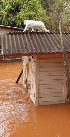 Na ponte sobre Rio do Campo, entre os jardins Gutierrez e Botânico, o cavalo é o único meio de transporte que se arriscou a passar na manhã deste sábado. Em outro ponto, o gato ficou isolado pela água em cima de uma casinha.