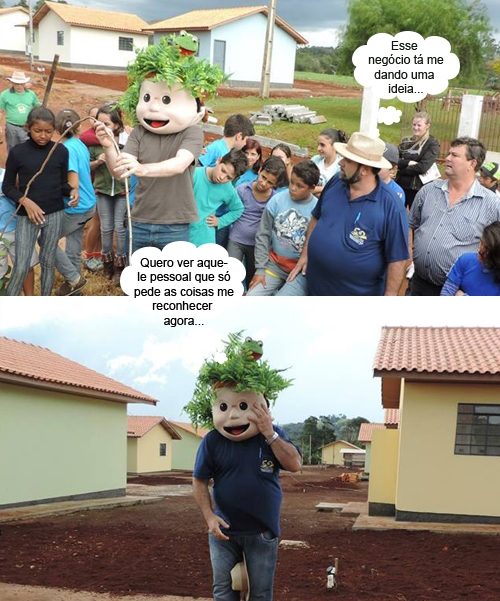 Os cliques são de Nova Cantu, onde o prefeito Airton Agnolin participou, quinta-feira, de plantio de árvores dentro da programação do Dia do Meio Ambiente. Aliás, ele acabou não resistindo e também experimentou a cabeça do "Agrinho", que animou as crianças que participaram do evento.