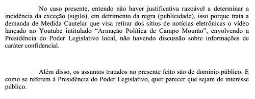 Segundo ela, como o caso se refere à Presidência da Câmara, "quer parecer que seja de interesse público".