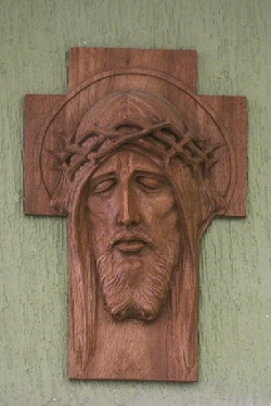 O crucifixo em madeira foi feito pelo escultor Conrador Moser.