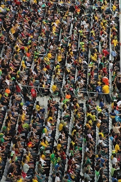 1) O estádio é bonito de ver, mas apertado pro torcedor (o padrão Fifa não é tudo isso).