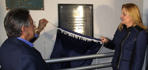 A cerimônia dos 50 anos do Paço Municipal 10 de Outubro, neste domingo, incluiu uma placa comemorativa no saguão da prefeitura. O descerramento foi feito pela prefeita Regina Dubay e pelo ex-vereador João Teodoro de Oliveira Sobrinho, que é filho do ex-prefeito Toninho Teodoro, que foi quem iniciou as obras do paço. Quando a obra foi inaugurada, em 29 de junho de 1964, Milton Luiz Pereira era prefeito havia sete meses, mas o projeto tinha sido iniciado por Teodoro.