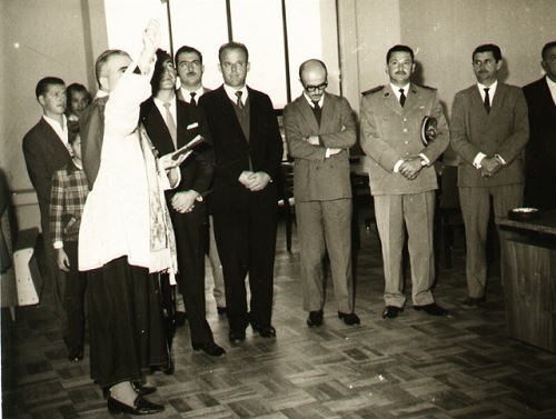 Da série sobre os 50 anos do Paço Municipal 10 de Outubro, a imagem mostra o bispo d. Eliseu Simões Mendes na hora da bênção da “Imagem de Cristo”, no Gabinete do Prefeito, em 29 de junho de 1964. Foi no dia da inauguração.