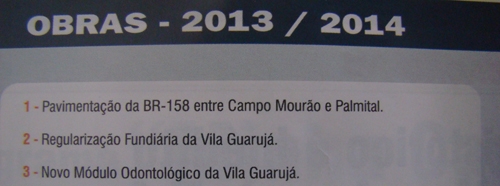 A primeira delas é a "Pavimentação da BR-158 entre Campo Mourão e Palmital".