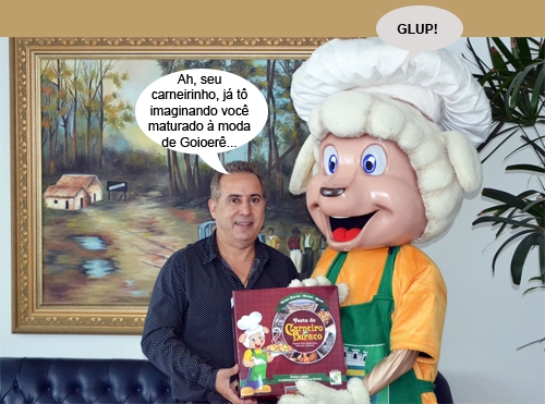 O carneirinho mascote da 24ª Festa Nacional do Carneiro no Buraco concluiu na quinta-feira o tour pelas 24 prefeituras da região. Os prefeitos foram convidados para a festança e ganharam um kit da festa. Na foto quem aparece é o prefeito de Goioerê, Beto Costa. Lá já aconteceu a Festa do Leitão Maturado. O carneiro também passou na quinta por Engenheiro Beltrão, Iretama, Quarto Centenário e Rancho Alegre do Oeste.