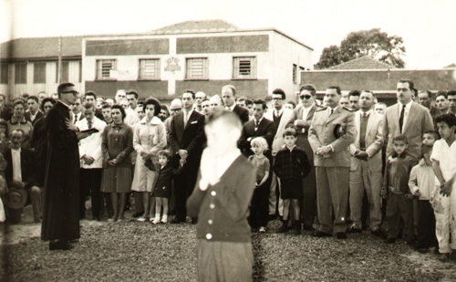 A série que comemora os 50 anos do Paço Municipal 10 de Outubro traz agora um "retrato" da celebração da missa campal celebrada pelo padre João Vieccelli, vigário da Igreja Matriz. Isso foi em 29 de junho de 1964. Ao fundo dá pra ver o prédido do Hotel Mundos, onde hoje fica a auto escola Paris. Neste domingo, 50 anos depois, a prefeitura fará solenidade (16h) para marcar a data.