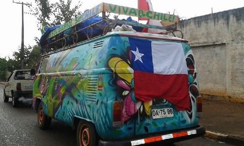 Torcedores do Chile passaram por Campo Mourão rumo ao Rio de Janeiro para torcer pela seleção chilena. De Kombi! O flagra foi feito por Leandro Giovanni e Diego Reis. A Kombosa teve um defeitinho e precisou ir pra oficina em Campo Mourão. Olha aí a Fifa World Cup rendendo divisas "pra nóis" também...