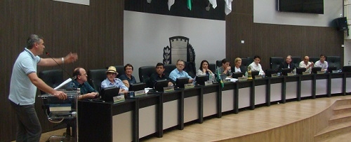 Toninho Machado (PR), vereador em Campo Mourão, durante a discussão sobre o fato de vereadores não terem cumprido o acordo assinado com a prefeitura; na sessão desta quarta-feira.