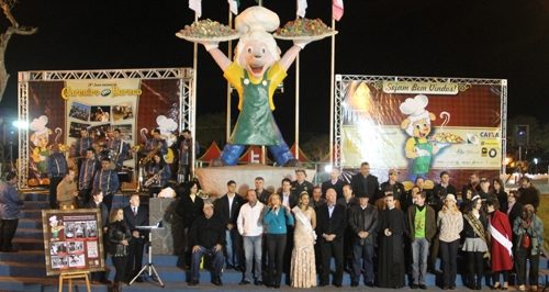 "Graças a este grande homem surgiu esta festa", frisou a prefeita Regina Dubay em seu discurso.
