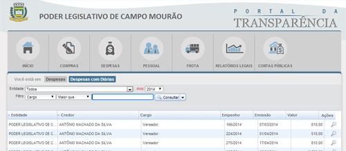 Faz seis meses que a Câmara de Campo Mourão não publica em seu site o relatório com as despesas mensais.