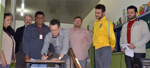 Peabiru - A escola municipal Emílio de Menezes vai ganhar quadra de esportes coberta. Para O prefeito Claudinei Minchio assinou a ordem de serviço para o início das obras. Serão investidos R$ 509,9 mil com recursos do governo federal e contrapartida da prefeitura.