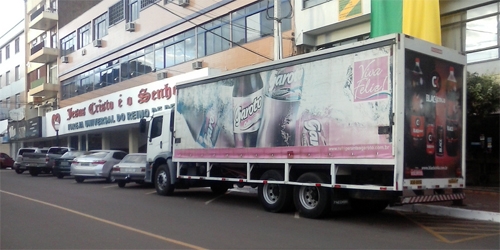 "Em pleno horário comercial, caminhão de refrigerante ocupa várias vagas pra carro ao lado da prefeitura, no centro de Campo Mourão". Leandro