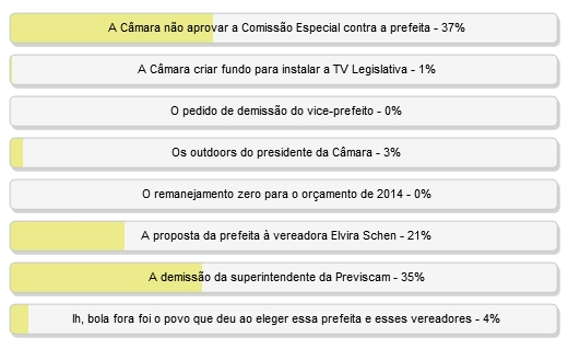 Venceu a alternativa "A Câmara não aprovar Comissão Especial contra a prefeita", com 37% dos votos.