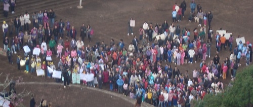 Olha o povo na praça! Foi nesta terça-feira pela manhã. E depois ainda teve passeata pelas ruas do centro. Mas não foi protesto contra a Copa do Mundo, não. Nem greve de ninguém.