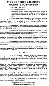A prefeita Regina Dubay assinou segunda-feira o decreto de situação de emergência em Campo Mourão por causa das chuvas do início de junho.