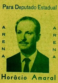 Em 1974, Augusto Carneiro se elegeu deputado estadual ao entrar no lugar do ex-prefeito Horácio Amaral, que morreu quando estava em campanha (veja santinho).