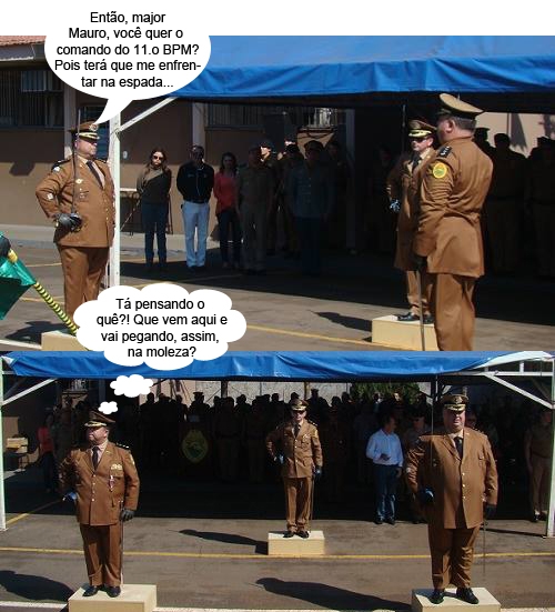 Os cliques são desta segunda-feira, quando aconteceu a solenidade de troca de comando do 11.o BPM de Campo Mourão. O major Wanderley Castro foi para a Corregedoria da PM, em Curitiba, e foi substituído pelo major Mauro dos Santos, que já atuou por aqui, mas estava em Ponta Grossa.