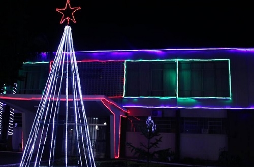 A iluminação na prefeitura foi acendida nesta sexta-feira.