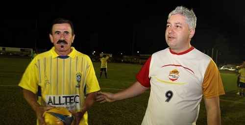 A prefeita Regina Dubay também foi ao estádio Roberto Brzezinski, nesta sexta-feira, para prestigiar o jogo da seleção brasileira de másters com um combinadão de veteranos de Campo Mourão. Regina não jogou, é claro, mas fez pose ao lado de alguns ex-jogadores, como o corintiano Biro-Biro. Ah, com o rei Pelé internado em São Paulo e o Messi com compromisso na Espanha, vai o Biro-Biro mesmo...