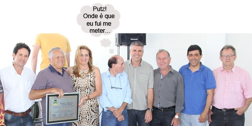 A prefeita Regina Dubay e seis vereadores estiveram por lá para a entega do título. Aí aconteceu de o vereador Olivino Custódio ficar do ladinho da prefeira, o que não deve ter agradado nem um, nem outro. Ah, ossos do ofício...