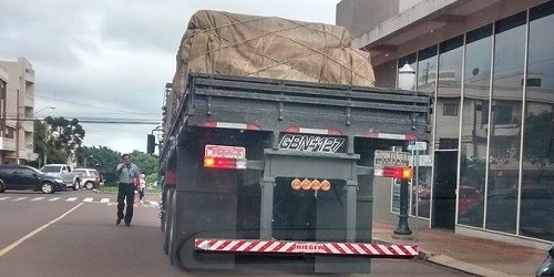 Nem a Câmara de Vereadores escapou dos caminhões que andam abusando no trânsito de Campo Mourão. Na manhã desta segunda-feira, esse aí ficou cerca de 15 minutos estacionado em fila dupla, em frente ao legislativo, para fazer descarga para uma loja ali por perto.