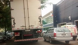 Caminhão baú passa pela av. Manoel Mendes de Camargo, entre as ruas Francisco Albuquerque e Araruna, na tarde desta segunda-feira. Não era hora de carga e descarga e, nem que fosse, caminhão trucado pode?...