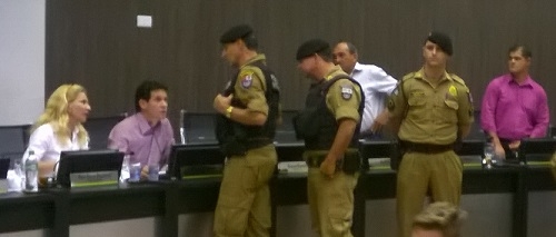 Quatro policiais militares acompanharam a sessão da Câmara desta terça-feira.