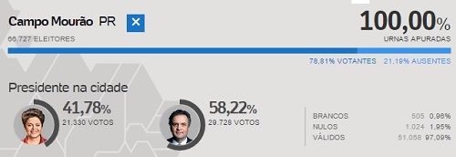 Campo Mourão: Dilma 41,78 x 58,22 Aécio