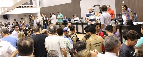 Até a assessora de Olivino entrou no bate-boca, com gritos de "mentiroso" das galerias.