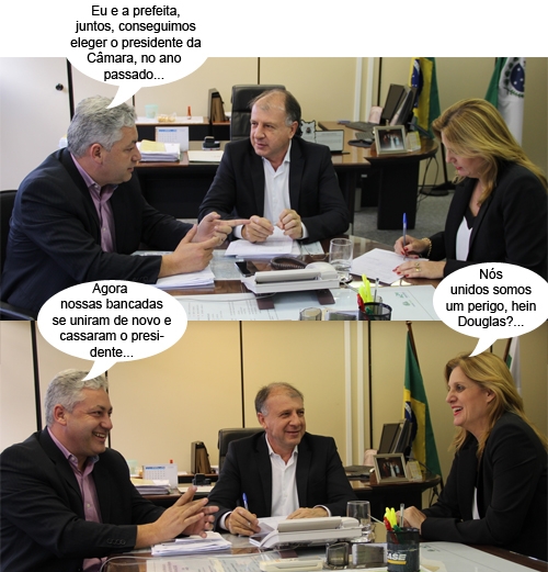 Os cliques são desta terça-feira, quando a prefeita Regina Dubay foi junto com o deputado Douglas Fabrício à Secretaria de Estado do Desenvolvimento Urbano para tratar de financiamento de R$ 7 milhões. O dinheiro será usado para fazer asfalto (R$ 2,7 milhões) e recape (R$ 4,3 milhões). E cá pra nós: não é todo dia que Regina e Douglas aparecem assim, juntos, e ainda rindo à toa...