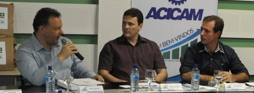 Fábio D"Alécio, ex-prefeito de Ubiratã, falando do diagnóstico regional feito quando presidiu a Comcam; ao participar da reunião da Acicam, em Campo Mourão, nesta quarta-feira.