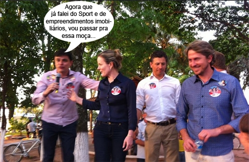 Na hora de armar o guarda-sol e colocar a mesinha da campanha, os cabos eleitorais nem perceberam, mas deram uma avançadinha além da conta. Os equipamentos não estão na área pública do calçadão, mas já dentro dos limites do terreno do Museu Municipal. E campanha em prédio público não pode. Hummmmmm...