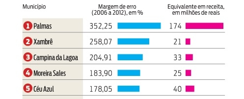 Campina da Lagoa aparece em terceiro lugar, com erro de 204,91%.