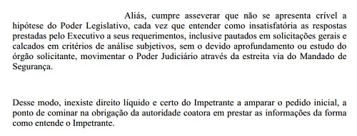 A ação reclamava de respostas do executivo a requerimentos da Câmara.