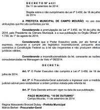 A prefeitura de Campo Mourão voltou a usar o método de baixar um decreto para avisar que não irá cumprir uma lei municipal.