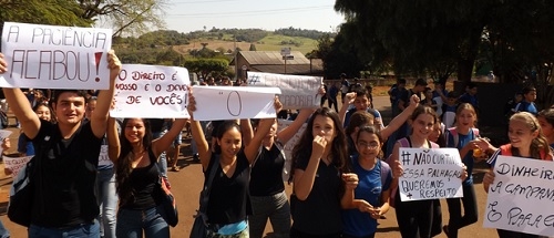 Alunos do colégio estadual João Farias da Costa, de Nova Cantu, fizeram protesto nesta sexta-feira.