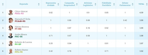 O ranking foi elaborado pelo Atlas Político, um projeto de pesquisadores brasileiros da Universidade de Harvard (EUA).