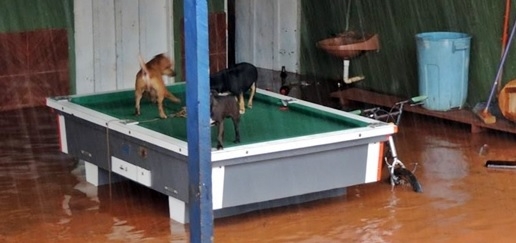 "Em Nova Cantu foi assim, os cães jogando sinuca enquanto esperam a a água baixar". Diego Pires.
