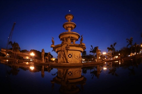 "O chafariz da praça Getúlio Vargas neste domingo à noite, sob a primeira lua nova da primavera". Irineu Ricardo