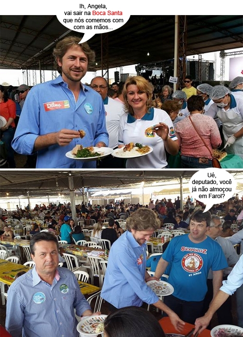 Os cliques são deste domingo, quando aconteceram duas festas de pratos típicos da região. A primeira é de Farol, e mostra a prefeita Angela Kraus ao lado do deputado federal Zeca Dirceu, saboreando o pernil à pururuca. A segunda é de Luiziana, e mostra o deputado Zeca Dirceu (de novo!) se servindo do boi na brasa ao lado do prefeito Mauro Slongo. O deputável Márcio Nunes também aparece na foto.