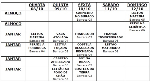 Foram confirmados 14 pratos diferentes (veja o quadro acima).