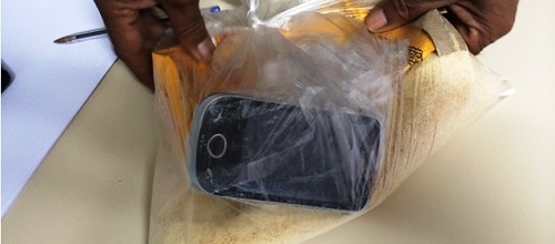 Uma mulher foi flagrada nesta segunda-feira tentando passar um celular para dentro da cadeia de Goioerê. O aparelho, que iria para um irmão dela, estava dentro de um pacote de farinha de mandioca. A mulher disse que não sabia de nada e que só pegou a farinha com outra pessoa, depois de receber um telefone do irmão preso. A polícia quer saber agora que telefone o irmão usou para dar essse telefonema. Ai-aiai-aiai, será que o segredo pra celular dar sinal é por na farinha?...