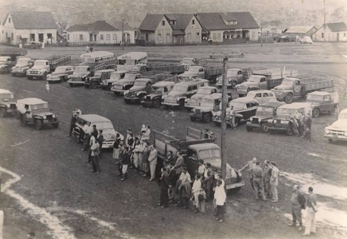Tá achando difícil estacionar no centro de Campo Mourão? A foto do acervo do Museu Municipal parece mostrar o que problema é antigo. E caminhão no centrão também é "questão cultural". O clic é da década de 1950, na av. Irmãos Pereira (ao fundo aparece o Hotel Central). Ah, ao menos não tinha buraco no "asfalto"...