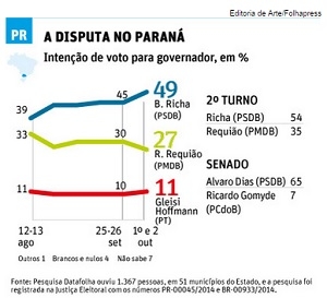 Depois vieram Roberto Requião (PMDB), com 27%, e o Gleisi Hoffmann (PT), com 11%.