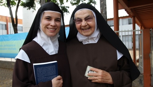 Duas irmãs carmelitas votaram neste domingo no colégio Integrado, em Campo Mourão. O dia da eleição é um dos raros momentos em que as irmãs carmelitas deixam o convento, na saída para Cascavel. Mas raro mesmo! Fora isso, elas deixam a clausura só quando precisam ir ao médico ou ao dentista. E viva a democracia!...
