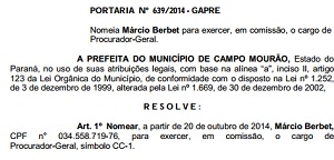 Durou somente quatro dias a exoneração do procuradora geral da prefeitura, Márcio Berbet.