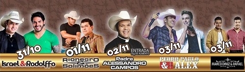 Entre as atrações tem a dupla Rionegro & Solimões, no dia 1 de novembro.