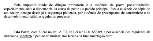 Para a juíza, no entanto, houve "ausência de pressupostos de constituição e de desenvolvimento válido e regular do processo".