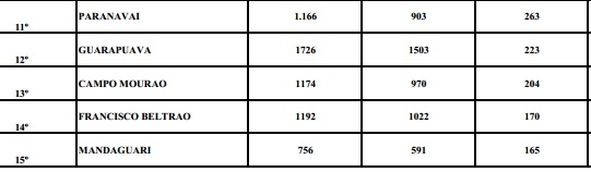 Campo Mourão ficou 13º lugar no Paraná, à frente de Foz do Iguaçu.