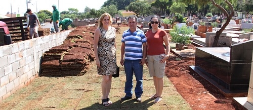 A prefeita Regina Dubay foi nesta quinta-feira onde, onde, onde? Ao Cemitério Municipal São Judas Tadeu. Foi ver o início do planio de grama esmeralda em algumas ruas internas do "campo santo". Outras melhorias estão sendo feitas no local. O cemitério vai ganhar até paver em algumas ruas. Cá pra nós: tá precisando mesmo, afinal, os "moradores" podem não reclamar, mas os visitantes...